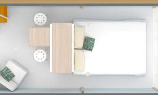 - Bett für 2 Personen (140x190) (Bettdecke und Kopfkissen werden gestellt)