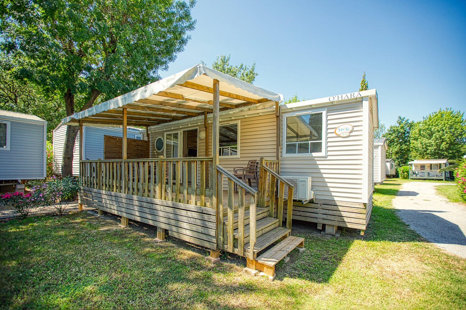 - Large covered wooden terrace