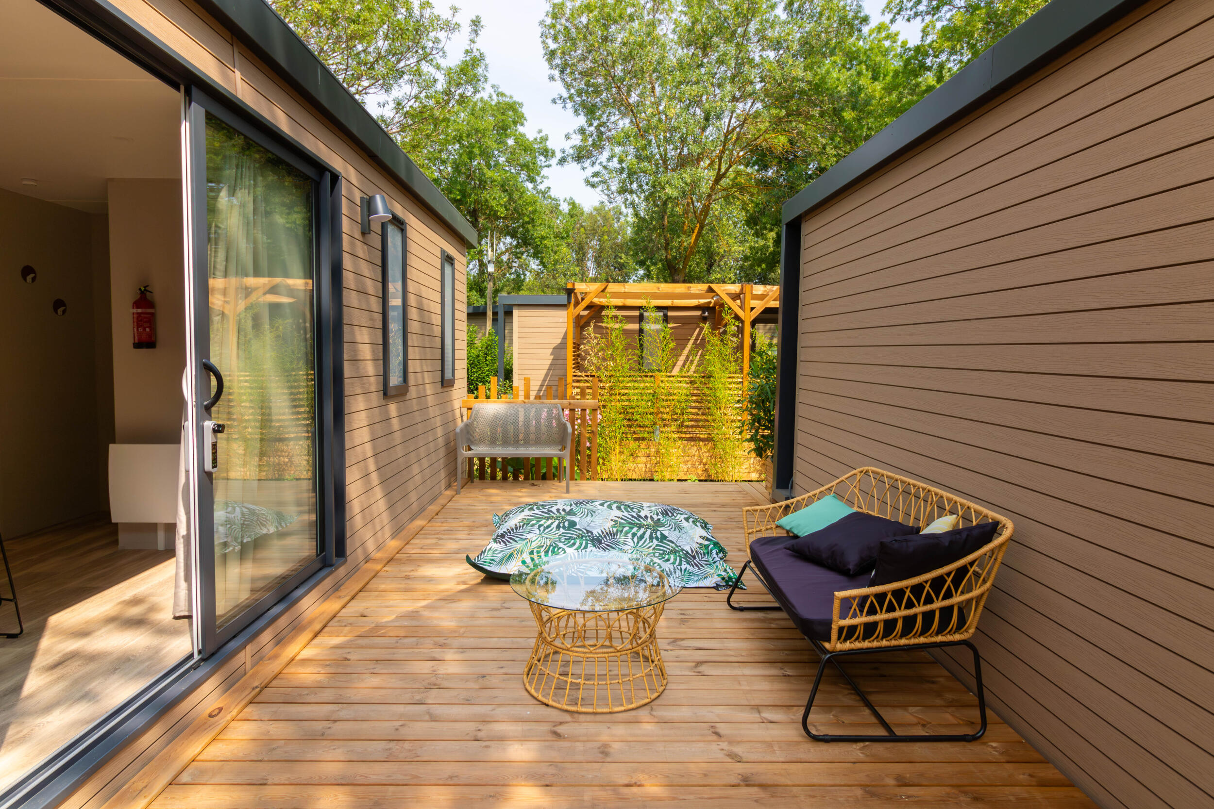 - Large covered wooden terrace