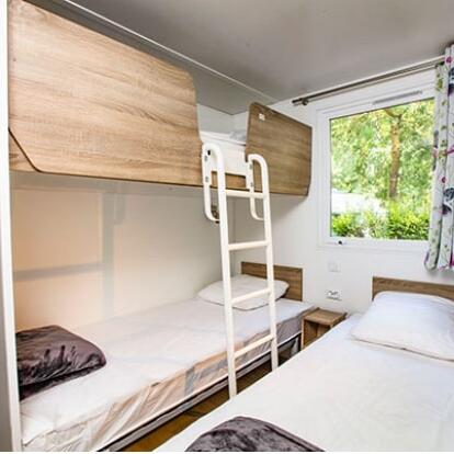 Zeer populair bij onze vakantiegangers, onze Luxe stacaravans kunnen tot 8 personen herbergen in hun grote ruimte in het midden van een gloednieuw terrein dat in 2021 in gebruik is genomen en een tweede dat in 2023 wordt ontwikkeld. Bestaande uit 2 tot 4 slaapkamers, vindt u aan de ene kant de ouderslaapkamer met een bed van 160 cm en twee badkamers, en aan de andere kant de kinderkamers met een of twee eenpersoonsbedden en mezzanines.